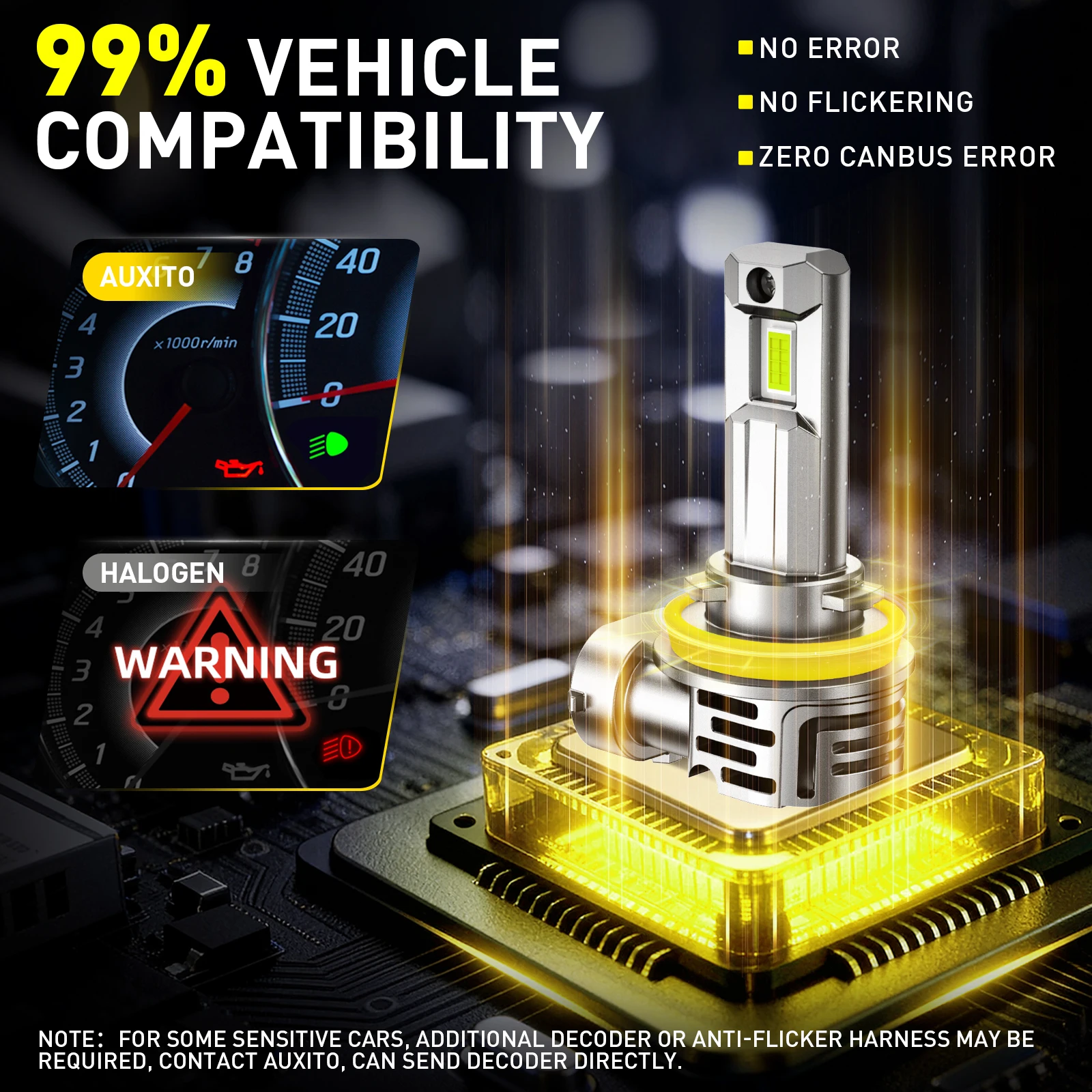 AUXITO 2Pcs 30000LM H11 H8 LED Headlight Bulbs 6500K White Turbo 9005 HB3 LED High Low Beam H9 9006 HB4 9012 Vehicle Light 12V